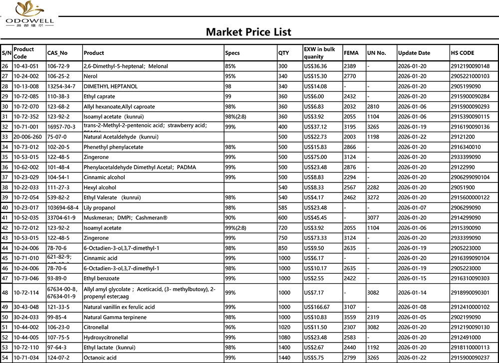 Odowell-Пазарна ценова листа-2025.12.27-2026.1.22